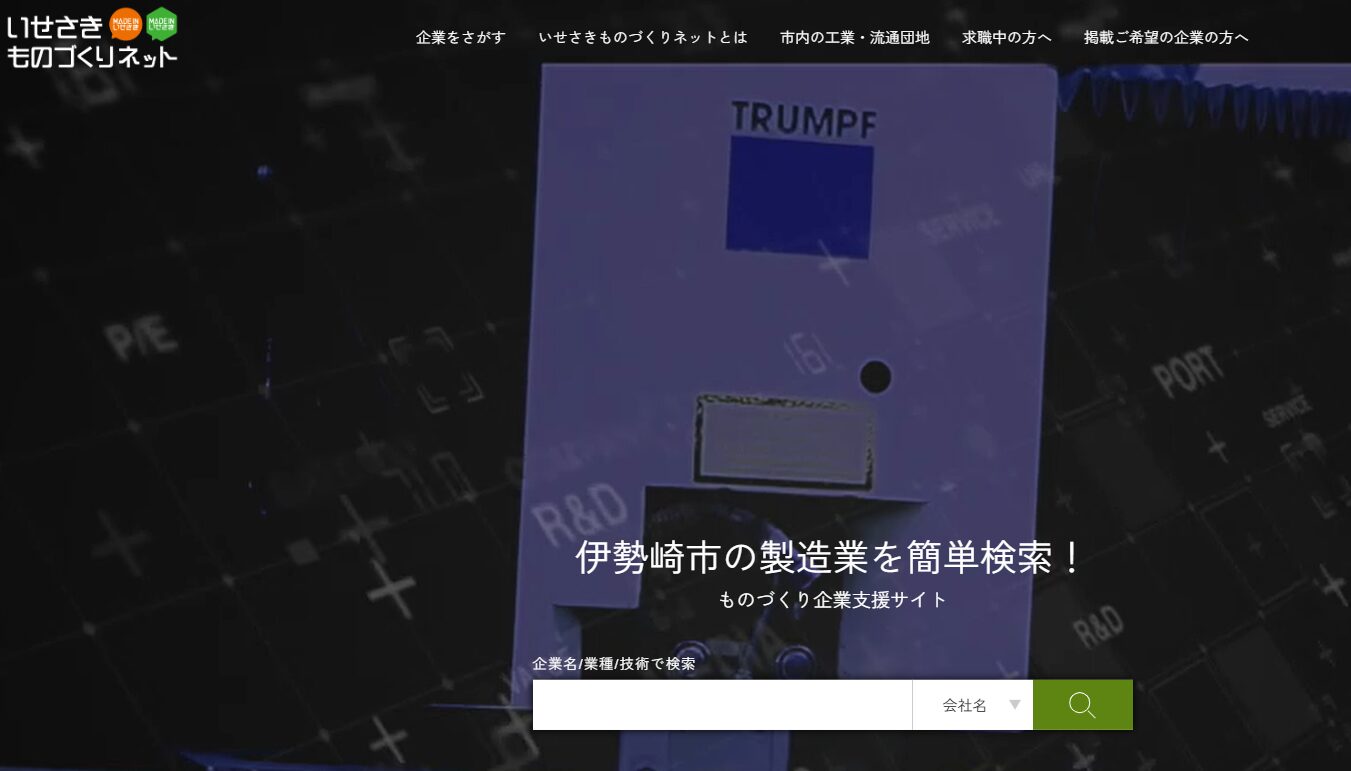 「いせさきものづくりネット」は、伊勢崎市内の製造業関連企業(「ものづくり」企業)と、発注側/受注側とのマッチングを支援するサイトです。